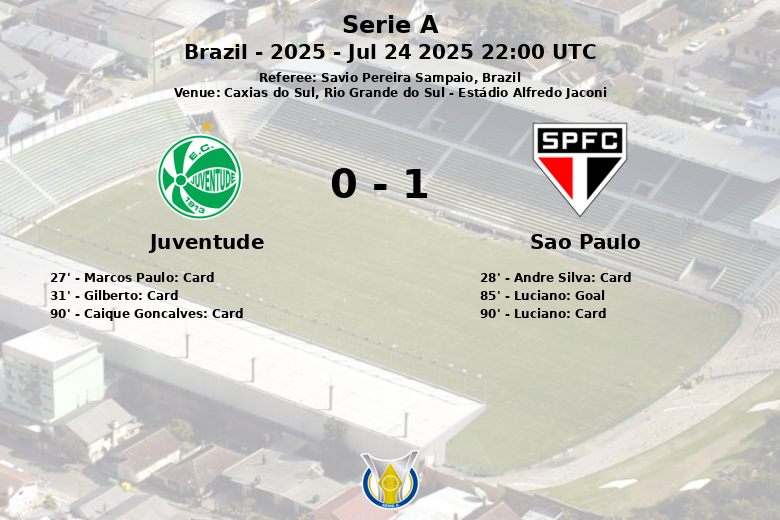 En un encuentro tenso y táctico, Sao Paulo logró imponerse a Juventude en el Estádio Alfredo Jaconi de Caxias do Sul. El partido, correspondiente a la jornada 16 de la Serie A brasileña, se caracterizó por una fuerte disputa en el mediocampo y un juego con pocas ocasiones claras de gol.