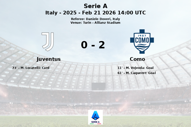 El Como abrió el marcador temprano, al minuto 11, con un gol de M. Vojvoda, asistido por A. Douvikas. La Juventus intentó reaccionar durante el resto de la primera mitad, pero no logró concretar sus oportunidades.