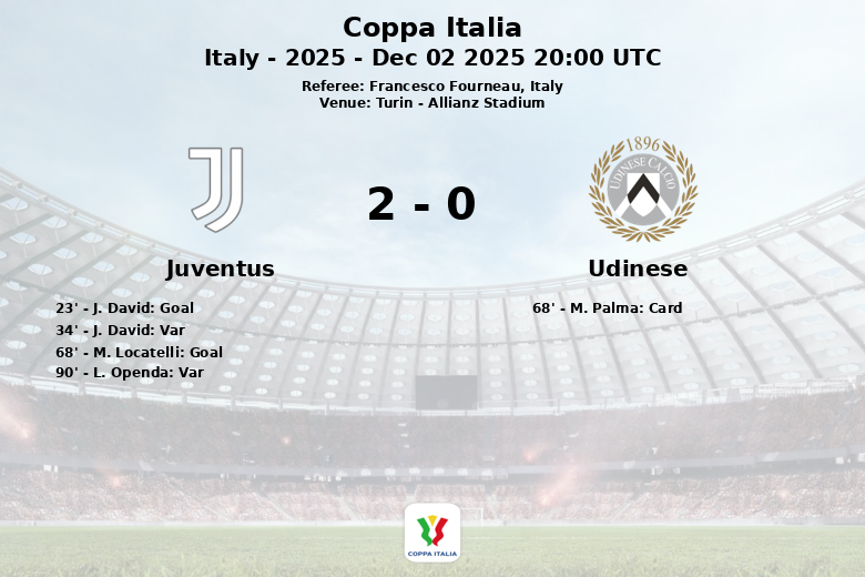 Turín, Italia – En un encuentro disputado en el Allianz Stadium, la Juventus logró una victoria frente a Udinese en la Coppa Italia. El partido, arbitrado por Francesco Fourneau, estuvo marcado por la intensidad y la polémica.