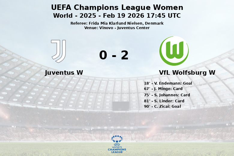 V. Endemann abrió el marcador para las alemanas en el minuto 18, tras una buena asistencia de S. Huth. La Juventus, aunque con mayor volumen ofensivo (22 tiros totales frente a 9 del Wolfsburgo), no logró materializar sus oportunidades, encontrándose con una defensa bien plantada y una falta de puntería, con solo 8 tiros a puerta. El equipo italiano dominó en saques de esquina, con 13 frente a los 2 de las visitantes.