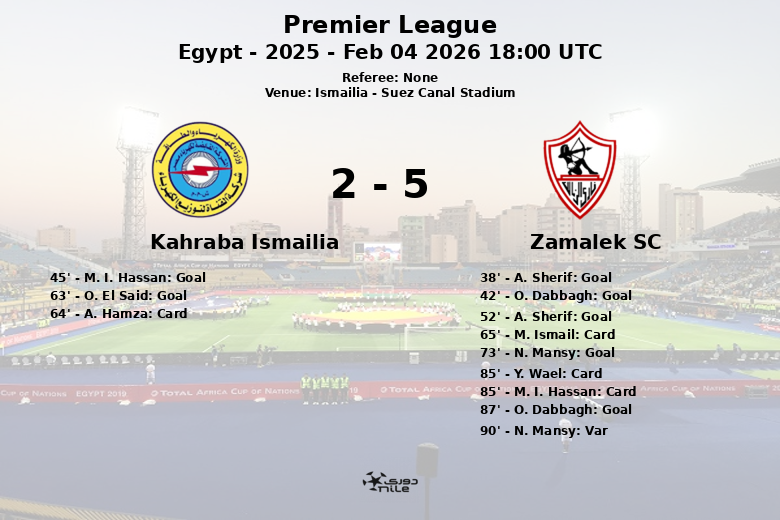 La segunda mitad comenzó con un gol tempranero de A. Sherif en el minuto 52, restaurando la ventaja de dos goles para el Zamalek SC. O. El Said descontó para el Kahraba Ismailia en el minuto 63, con asistencia de A. Sulieman, reavivando las esperanzas locales. Sin embargo, N. Mansy anotó para el Zamalek SC en el minuto 73, prácticamente sellando la victoria para su equipo. O. Dabbagh cerró la cuenta en el minuto 87 tras asistencia de N. Mansy. El partido estuvo marcado por la intensidad y las numerosas faltas, lo que resultó en varias tarjetas amarillas para ambos equipos.