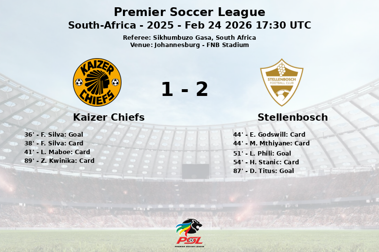 El encuentro comenzó con un gol de F. Silva para Kaizer Chiefs al minuto 36, con asistencia de M. Lilepo. Sin embargo, la alegría no duraría mucho. L. Phili empató el partido para Stellenbosch al minuto 51, asistido por D. Titus, y luego, D. Titus marcó el gol de la victoria al minuto 87, con asistencia de I. Jabaar.