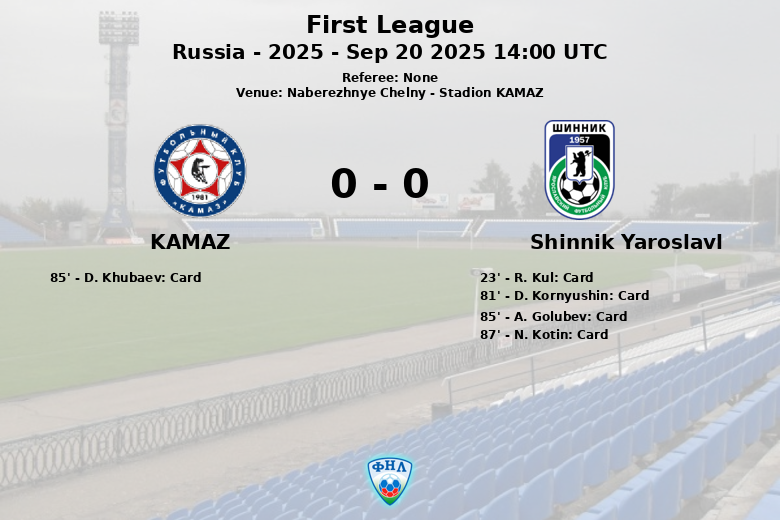 Home Matches KAMAZ vs Shinnik Yaroslavl Sep 20 2025 14:00 UTC