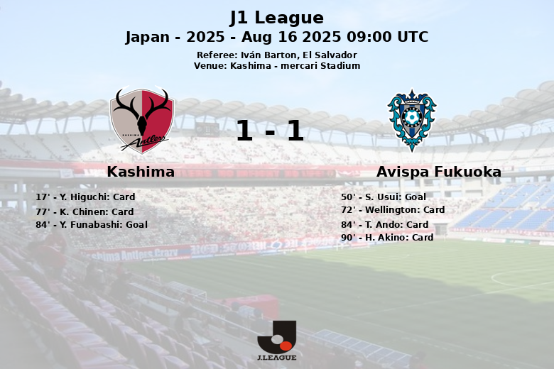 El partido estuvo marcado por numerosas faltas y tarjetas amarillas. Y. Higuchi (Kashima) fue amonestado en el minuto 17, seguido por Wellington (Avispa Fukuoka) en el 72, K. Chinen (Kashima) en el 77, T. Ando (Avispa Fukuoka) en el 84 y H. Akino (Avispa Fukuoka) al minuto 90. A pesar de los esfuerzos de ambos equipos, el marcador no se movió más, sellando un empate que deja un sabor agridulce para ambos conjuntos. Kashima generó 12 tiros de los cuales tres fueron a puerta, mientras que Avispa Fukuoka también tiro 12 veces, pero con 3 a puerta.