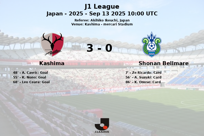Kashima Antlers demostró su poderío en casa, el mercari Stadium de Kashima, al derrotar a Shonan Bellmare en un partido de la J1 League que culminó con un marcador de 3 a 0. El encuentro, arbitrado por Akihiko Ikeuchi, tuvo lugar en la jornada 29 de la temporada regular.