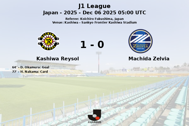 El único gol del partido llegó al minuto 64, producto de un autogol desafortunado de D. Okamura, otorgándole la ventaja a Machida Zelvia. A pesar del dominio territorial de Kashiwa Reysol y sus cinco saques de esquina, no lograron convertir su superioridad en goles. El partido se caracterizó por un alto número de faltas, 10 por parte de Machida Zelvia y 4 por Kashiwa Reysol, reflejando la intensidad del duelo. H. Nakama de Kashiwa Reysol recibió una tarjeta amarilla en el minuto 77. Al final, el marcador quedó reflejando el solitario tanto en propia meta. Un partido cerrado, con pocas ocasiones claras y un desenlace marcado por el infortunio.