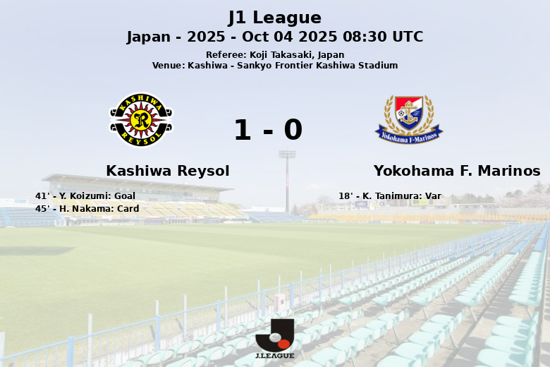 KASHIWA, Japón – En un encuentro disputado en el Sankyo Frontier Kashiwa Stadium, el Kashiwa Reysol se impuso al Yokohama F. Marinos en un partido donde la posesión del balón y la efectividad marcaron la diferencia. El Kashiwa Reysol, dominando el juego con un 67% de la posesión, logró capitalizar su superioridad con un gol de Y. Koizumi al minuto 41, asistido por H. Nakama.