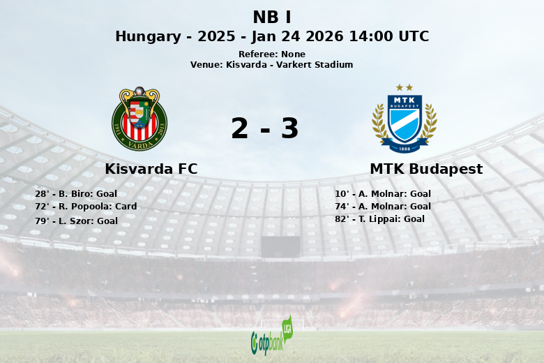 El MTK Budapest se adelantó temprano, al minuto 10, con un gol de A. Molnar tras una asistencia de H. Nemeth. Sin embargo, el Kisvarda respondió al minuto 28 con un gol de B. Biro, igualando las acciones.