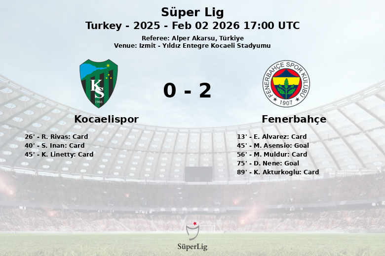 Kocaelispor vs Fenerbahçe Feb 02 2026 17:00 UTC