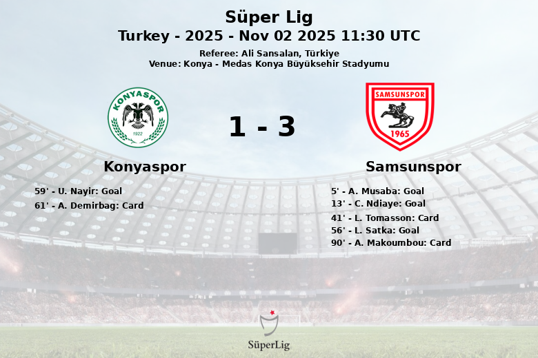 Konyaspor vs Samsunspor Nov 02 2025 11:30 UTC