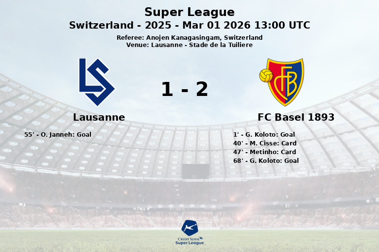 Lausanne vs FC Basel 1893 Mar 01 2026 13:00 UTC