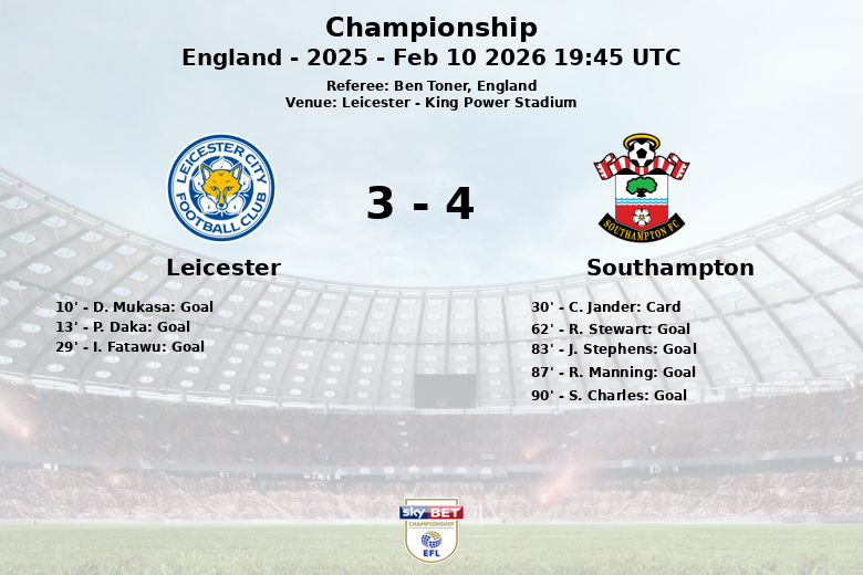 Leicester, Inglaterra – En un vibrante encuentro disputado en el King Power Stadium, el Leicester y el Southampton igualaron en un partido de altibajos que mantuvo a los aficionados al borde de sus asientos hasta el último segundo. El partido, correspondiente a la jornada 32 de la Championship 2025, finalizó con un marcador de empate, reflejando la intensidad y la lucha constante en el terreno de juego.