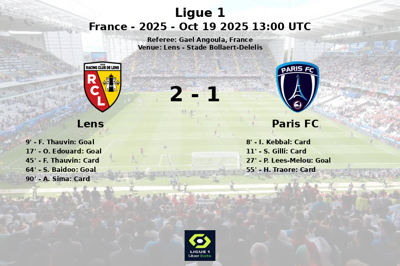 El partido fue intenso, con un total de 19 faltas (11 para Lens, 8 para Paris FC) y 4 tarjetas amarillas (2 para cada equipo). El Lens generó 10 tiros (3 a puerta y 4 fuera) y 11 corners, mientras que el Paris FC realizó 8 tiros (3 a puerta y 2 fuera) y 3 corners. Al final, el Lens se llevó la victoria en casa ante su afición.