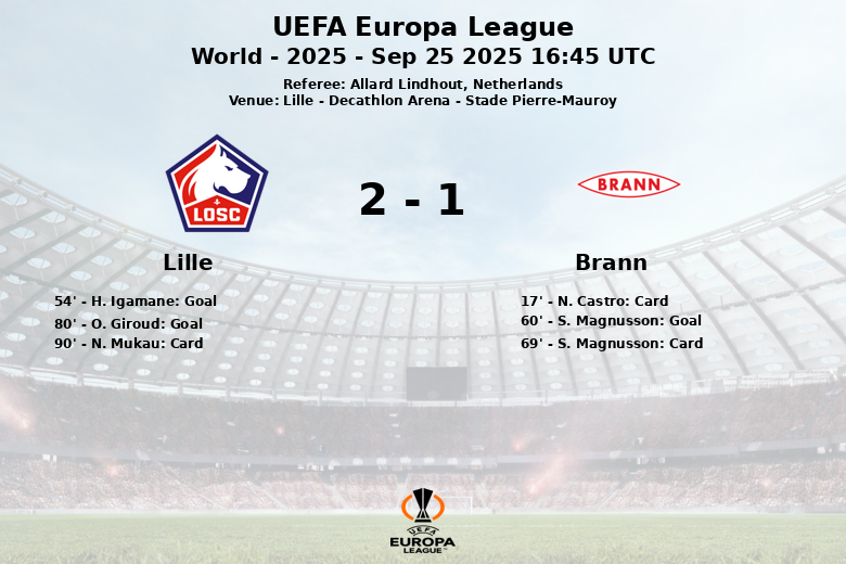 En los minutos finales, el partido se tornó aún más emocionante. O. Giroud, con asistencia de T. Santos, volvió a adelantar al Lille en el minuto 80. Pero el Brann logró mantener el empate. El árbitro, Allard Lindhout, mostró dos tarjetas amarillas al Brann y una al Lille. Lille sacó 11 tiros de esquina, mientras que Brann solo 3.