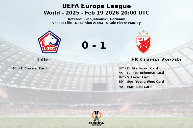 Lille, Francia – En un encuentro disputado en el Decathlon Arena – Stade Pierre Mauroy, el FK Crvena Zvezda logró una importante victoria frente al Lille en el marco de la UEFA Europa League. El partido, arbitrado por el alemán Sven Jablonski, se caracterizó por su intensidad y equilibrio, aunque el equipo serbio supo aprovechar sus oportunidades.