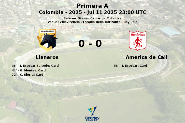 Villavicencio, Colombia – En un vibrante encuentro disputado en el Estadio Bello Horizonte – Rey Pelé, Llaneros y América de Cali igualaron en un partido correspondiente a la primera fecha del Clausura de la Primera A colombiana. El árbitro Steven Camargo dirigió el encuentro, caracterizado por un juego físico y táctico.