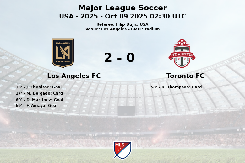 Los Angeles, USA – En un partido disputado en el BMO Stadium, Los Angeles FC se impuso a Toronto FC en un encuentro que dejó momentos clave. El partido, correspondiente a la jornada 18 de la temporada regular de la Major League Soccer, tuvo a Filip Dujic como árbitro principal.