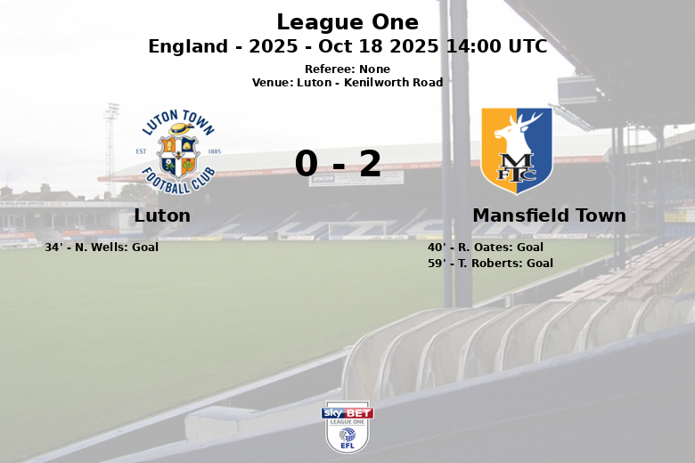 El Luton se adelantó en el marcador al minuto 34 gracias a N. Wells, quien aprovechó su propio fallo en un penal para marcar. Sin embargo, el Mansfield Town reaccionó con fuerza. R. Oates igualó el marcador al minuto 40 con un gol, llevando el partido al descanso con un empate.