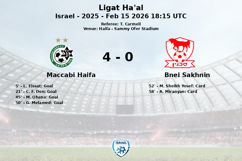 Maccabi Haifa Domina con Exhibición Ofensiva en Triunfo Contundente Sobre Bnei Sakhnin
