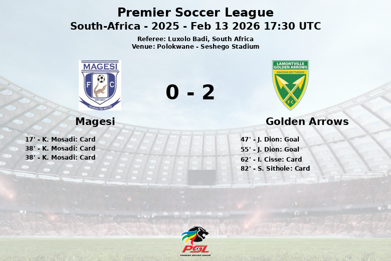 Home Matches Magesi vs Golden Arrows Feb 13 2026 17:30 UTC