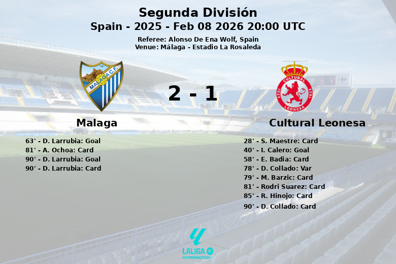 Málaga y Cultural Leonesa protagonizaron un vibrante encuentro en el Estadio La Rosaleda, que finalizó con un empate 2-2. El partido, correspondiente a la jornada 25 de la Segunda División, estuvo marcado por la intensidad y las ocasiones para ambos equipos.