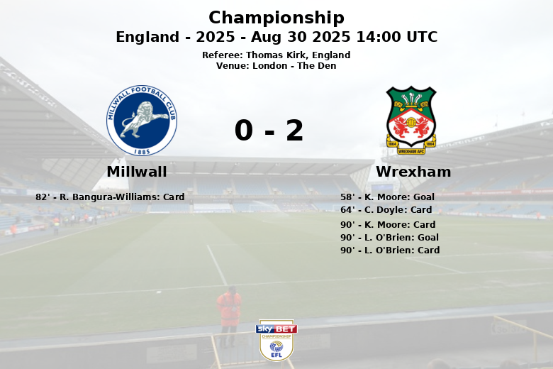El marcador se abrió al minuto 58 gracias a un gol de K. Moore, asistido por M. Cleworth, poniendo en ventaja al equipo visitante. El Millwall luchó por igualar el encuentro, pero la defensa del Wrexham se mantuvo sólida. El partido se calentó en los minutos finales, con tarjetas amarillas para C. Doyle (Wrexham) en el 64′, R. Bangura-Williams (Millwall) en el 82′, K. Moore (Wrexham) y L. O’Brien (Wrexham) ya en el tiempo de descuento. La alegría del Wrexham se multiplicó al minuto 90, cuando L. O’Brien, asistido por J. McClean, anotó el gol que aseguró el empate. A pesar del dominio territorial del Millwall y sus 5 corners, el Wrexham demostró una mayor eficacia en el remate, aunque con menos oportunidades. El árbitro Thomas Kirk tuvo una tarde ajetreada, señalando 12 faltas para el Wrexham y 10 para el Millwall.