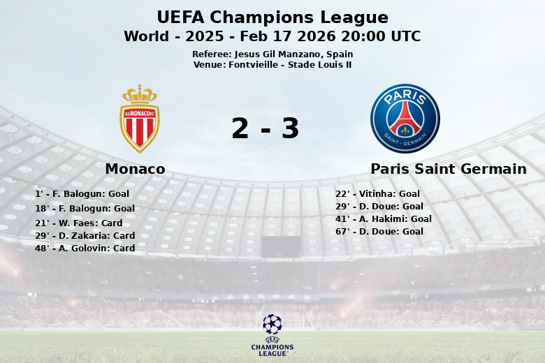 Fontvieille, Mónaco – En un partido cargado de emociones y contrastes, el Paris Saint Germain se impuso al Mónaco en el Stade Louis II, en un encuentro correspondiente a la UEFA Champions League. A pesar de un inicio fulgurante del Mónaco, con dos goles tempraneros de F. Balogun en los minutos 1 y 18, el dominio del PSG se hizo sentir.