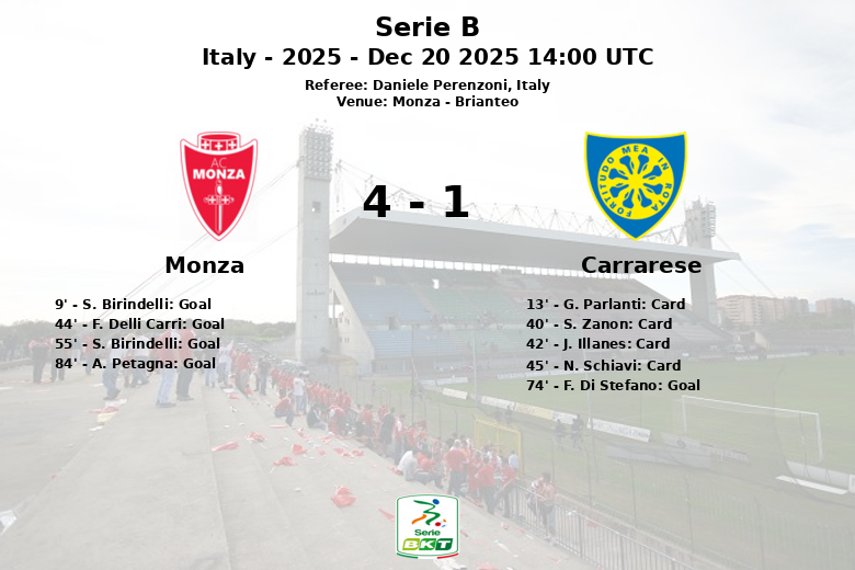 Monza, Italia – En un vibrante encuentro disputado en el Brianteo, el Monza logró una contundente victoria frente al Carrarese. El partido, correspondiente a la jornada 17 de la Serie B, estuvo marcado por la alta intensidad y la lluvia de goles, especialmente por parte del equipo local.
