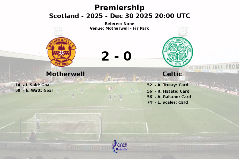 I. Said abrió el marcador para el Motherwell en el minuto 14, gracias a una asistencia de S. O’Donnell, desatando la euforia en las gradas. A pesar de los esfuerzos del Celtic por igualar el marcador, el Motherwell se mantuvo firme en defensa. En el minuto 58, E. Watt amplió la ventaja para los locales, dejando al Celtic en una situación comprometida.