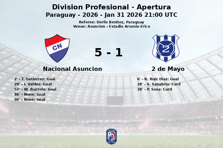 Asunción, Paraguay – En un partido cargado de emociones y alternativas, Nacional Asunción logró una contundente victoria frente a 2 de Mayo en el Estadio Arsenio Erico, en el marco de la tercera jornada del Apertura de la División Profesional.