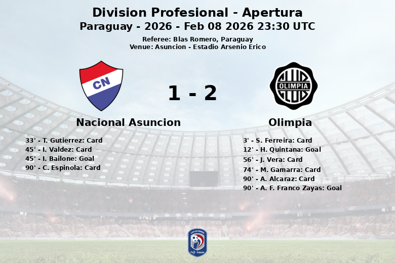 Home Matches Nacional Asuncion vs Olimpia Feb 08 2026 23:30 UTC