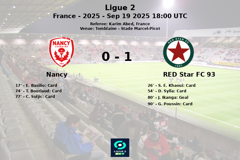Sin embargo, la defensa del Nancy logró resistir heroicamente hasta el minuto 80, cuando J. Ikanga, sin asistencia aparente, finalmente logró batir al guardameta local, otorgando la ventaja decisiva al Red Star FC 93.