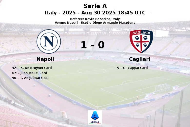 El gol de la victoria para el Napoli llegó en el minuto 90, gracias a un tanto de F. Anguissa, quien aprovechó una asistencia de A. Buongiorno para desatar la euforia en el Stadio Diego Armando Maradona. A pesar del esfuerzo del Cagliari, que no logró obtener ni un solo corner a su favor, el Napoli sumó tres puntos importantes en la Serie A. El árbitro, Kevin Bonacina, tuvo una labor intensa durante todo el partido.