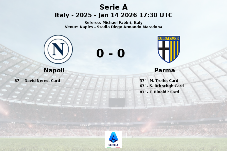 El Napoli generó un total de 13 tiros, de los cuales solo 4 fueron a puerta y 4 terminaron fuera. La insistencia del equipo se reflejó también en los 7 corners que consiguió. Sin embargo, la defensa del Parma se mantuvo sólida, a pesar de conceder 12 faltas y recibir 3 tarjetas amarillas (M. Troilo, S. Britschgi, y F. Rinaldi). El Napoli recibió una tarjeta amarilla mostrada a David Neres.