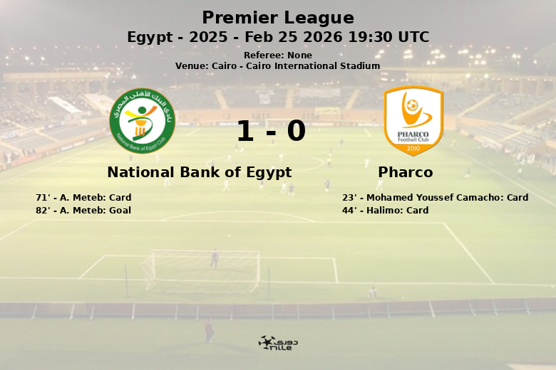 A pesar del control del juego, el gol se hizo esperar. El Pharco, con una posesión del 34%, buscó oportunidades al contraataque, generando seis tiros de esquina. Sin embargo, fue el National Bank of Egypt quien finalmente logró romper el empate en el minuto 82 gracias a un gol de A. Meteb, asistido por O. Faisal.