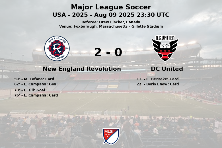 Foxborough, Massachusetts – En un encuentro disputado en el Gillette Stadium, New England Revolution superó a DC United con un marcador de 2 a 0. El partido, válido por la jornada 26 de la temporada regular de la Major League Soccer 2025, vio a los locales imponer su ritmo, especialmente en la segunda mitad.