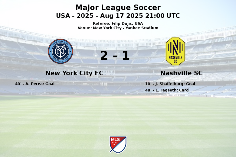 Nashville SC se adelantó temprano en el minuto 10 gracias a un gol de J. Shaffelburg, quien aprovechó una excelente asistencia de H. Mukhtar. Sin embargo, New York City FC respondió antes del descanso. A. Perea igualó el marcador en el minuto 40, recibiendo un pase preciso de H. Wolf.