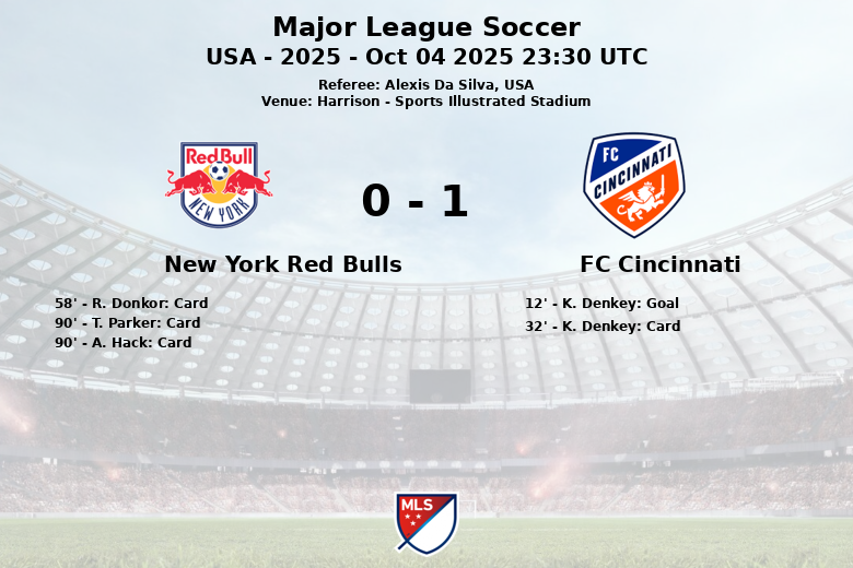 Harrison, USA – En un encuentro correspondiente a la jornada 33 de la temporada regular de la Major League Soccer, FC Cincinnati se impuso a New York Red Bulls en el Sports Illustrated Stadium. El único gol del partido llegó temprano, al minuto 12, cuando K. Denkey, asistido por Brenner, envió el balón al fondo de la red para adelantar a Cincinnati.