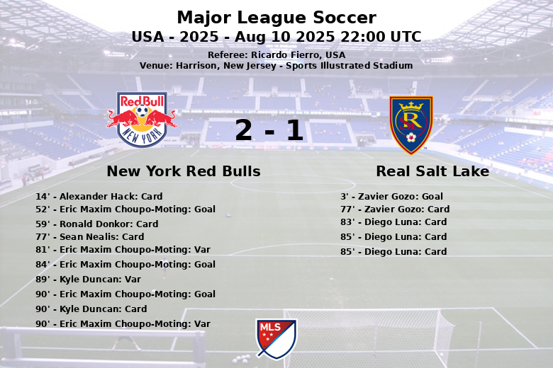 New York Red Bulls vs Real Salt Lake Aug 10 2025 22:00 UTC