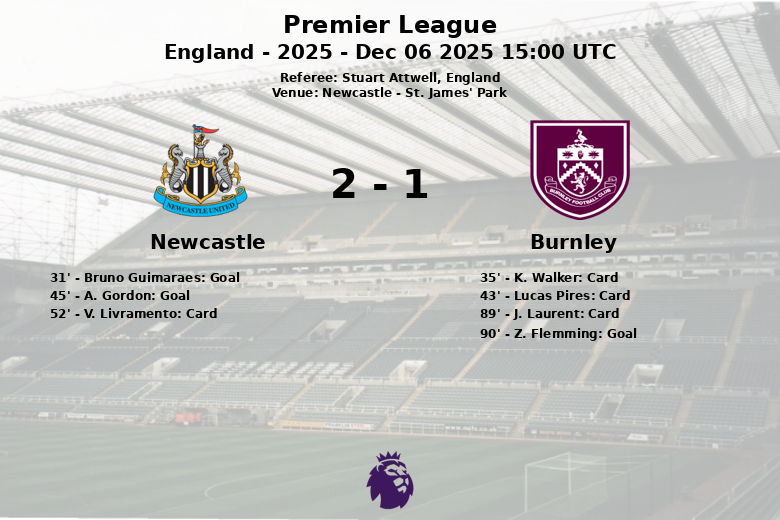 Newcastle, Inglaterra – En un encuentro correspondiente a la jornada 15 de la Premier League, el Newcastle logró una importante victoria frente al Burnley en su estadio, St. James’ Park. El partido, arbitrado por Stuart Attwell, estuvo marcado por la tensión y la intensidad, reflejada en el alto número de tarjetas mostradas.