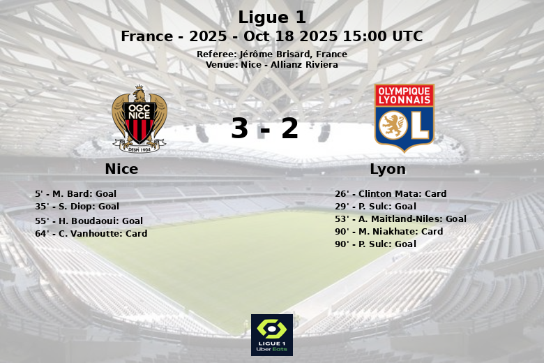 Nice vs Lyon Oct 18 2025 15:00 UTC