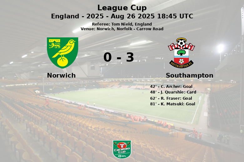 A pesar de los esfuerzos del Norwich, que intentó generar peligro con 9 tiros (4 a puerta), la defensa del Southampton se mantuvo firme. El partido también se caracterizó por un alto número de faltas, con 17 cometidas por el Southampton y 6 por el Norwich. J. Quarshie del Southampton recibió una tarjeta amarilla en el minuto 48. El árbitro Tom Nield dirigió el encuentro.