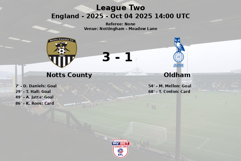 Nottingham, Inglaterra – En un vibrante encuentro disputado en Meadow Lane, Notts County se llevó la victoria frente a Oldham con un marcador que reflejó la intensidad del juego. El partido, correspondiente a la jornada 11 de la League Two, Temporada 2025, estuvo marcado por momentos de gran tensión y jugadas emocionantes.