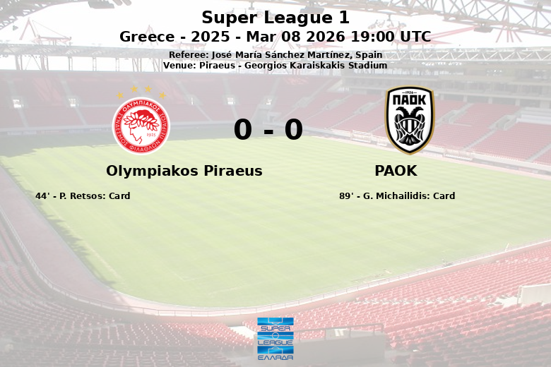 Piraeus, Grecia – En un encuentro disputado en el Georgios Karaiskakis Stadium, el Olympiakos y el PAOK empataron en un partido correspondiente a la jornada 24 de la Super League 1. A pesar del resultado, el Olympiakos dominó la posesión del balón con un 60% frente al 40% del PAOK, reflejando un claro control del juego por parte del equipo local.