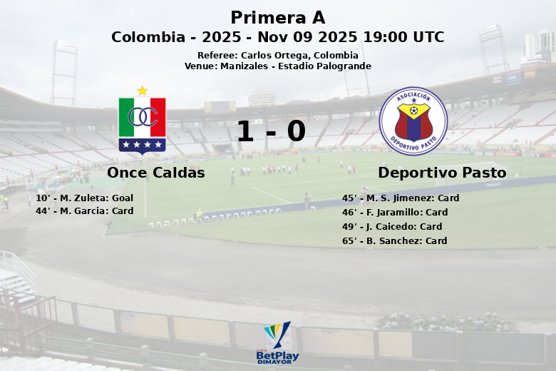 Manizales, Colombia – En un partido correspondiente a la fecha 19 del Clausura de la Primera A colombiana, Once Caldas derrotó a Deportivo Pasto en el Estadio Palogrande. El encuentro, arbitrado por Carlos Ortega, se caracterizó por un juego disputado en el mediocampo y varias amonestaciones.