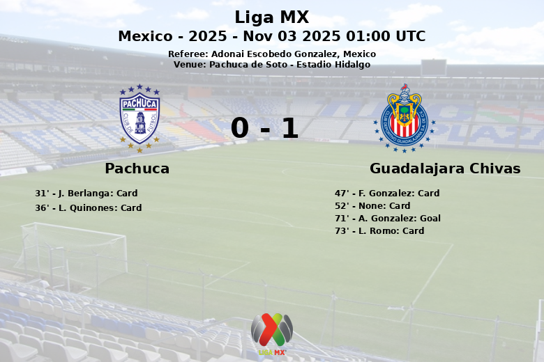 Pachuca de Soto, Hidalgo – En un partido cargado de tensión y emociones, Guadalajara Chivas se impuso como visitante ante Pachuca en el Estadio Hidalgo, en un encuentro correspondiente a la jornada 16 del Apertura 2025 de la Liga MX. El partido, arbitrado por Adonai Escobedo Gonzalez, tuvo momentos de alta intensidad y controversia que definieron el resultado final.