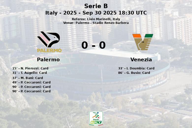 Palermo vs Venezia Sep 30 2025 18:30 UTC