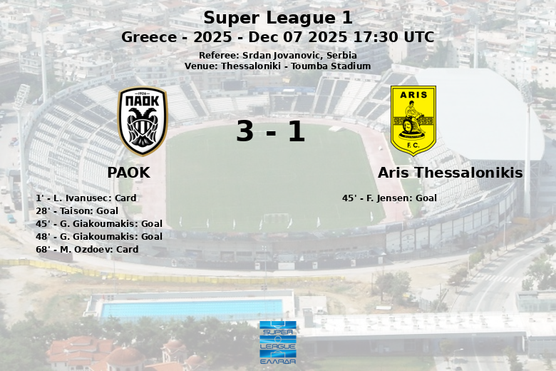 Finalmente, el PAOK se llevó la victoria en un partido donde la posesión y la efectividad de cara al gol fueron clave. El equipo local registró 19 tiros, de los cuales 6 fueron a puerta, mientras que el Aris sólo logró 3 remates entre los tres palos. El dominio del PAOK en los corners (7 frente a 1 del Aris) también fue un factor importante en el resultado final. El partido terminó con una victoria para el PAOK en un clásico griego lleno de pasión.