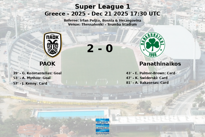 Aunque el Panathinaikos intentó reaccionar con varias llegadas, su falta de efectividad quedó patente en las estadísticas de tiros a puerta (1 frente a los 11 del PAOK). El equipo visitante acumuló un total de tres tarjetas amarillas, evidenciando la frustración en el campo. El encuentro, arbitrado por Irfan Peljto de Bosnia & Herzegovina, finalizó con un claro dominio del PAOK, que sumó tres valiosos puntos en la Super League 1.