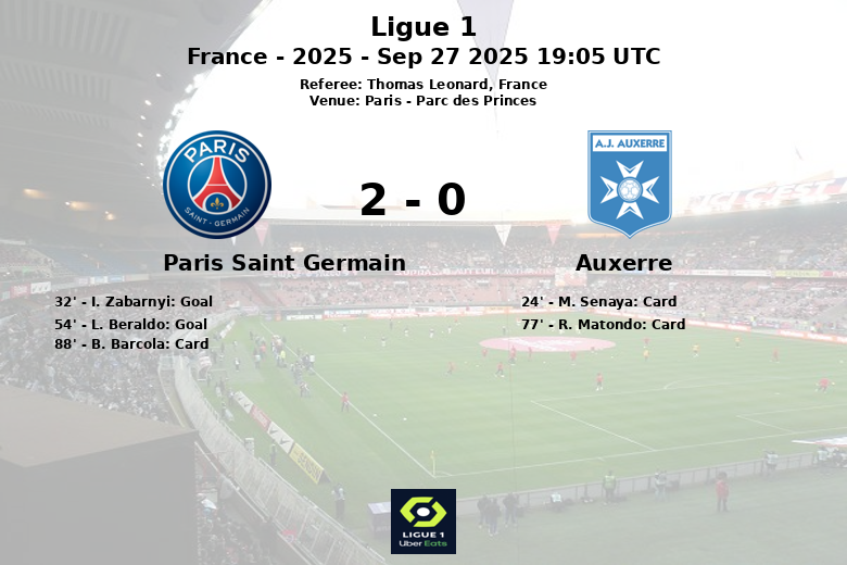 El primer gol del partido llegó al minuto 32, cuando I. Zabarnyi conectó un remate tras una asistencia de Vitinha, abriendo el marcador para los parisinos. En la segunda mitad, L. Beraldo amplió la ventaja en el minuto 54, con un gol asistido por S. Mayulu.